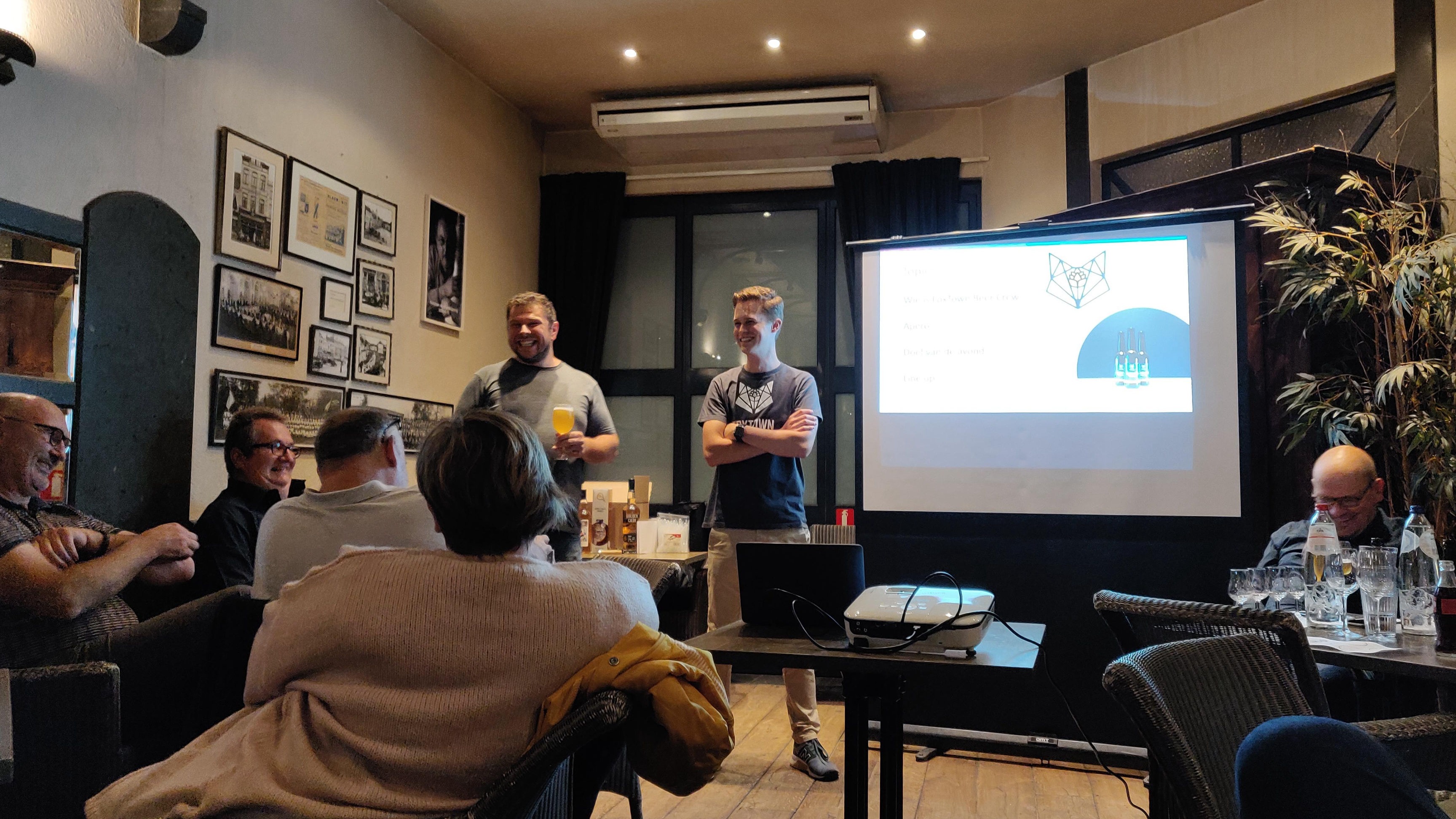 Na een welkomstwoordje van onze voorzitter, waarbij uittredend bestuurslid Chris Geysen in de bloemetjes werd gezet voor zijn jarenlange inzet voor de club en het verwelkomen van de twee nieuwe leden die deel gaan uitmaken van het bestuur,  Bart & Symon, was het tijd voor proeven!